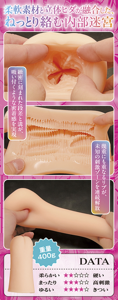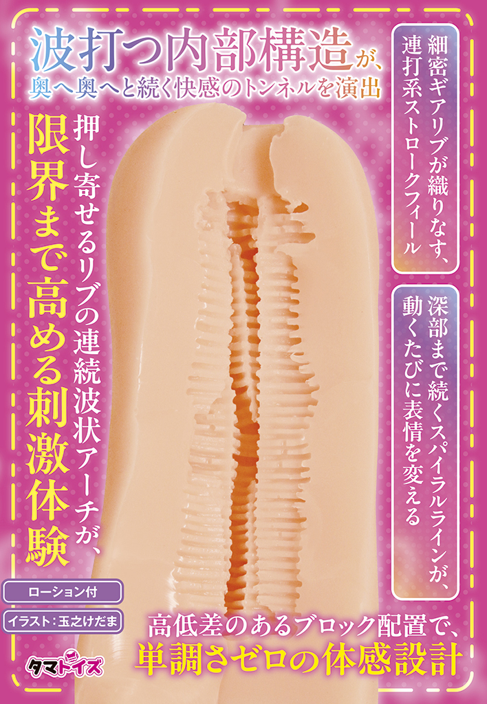 公式コラボ商品 玉之けだま 貴方の精気は私のモノ・・・? 未知の世界がお出迎え ヤバそうなシーシャ屋さん店主“みゅう”のアソコを再現 幾重にも重なるリブが、未知の刺激ゾーンを連続解放 波打つ内部構造が、奥へ奥へと続く快感のトンネルを演出 緻密に刻まれた段差と溝が、吸い付くような密着感を実現 細密ギアリブが織りなす、連打系ストロークフィール 深部まで続くスパイラルラインが、動くたびに表情を変える 高低差のあるブロック配置で、単調さゼロの体感設計 柔軟素材と立体ヒダが融合した、ねっとり絡む内部迷宮 押し寄せるリブの連続波状アーチが、限界まで高める刺激体験 柔かい★★☆☆☆硬い まったり★★★☆☆高刺激 ゆるい★★★★☆キツい ローション付き 400g 日本製 ローション付 イラスト:玉之けだま ©玉之けだま/D-core/MELONBOOKS