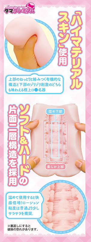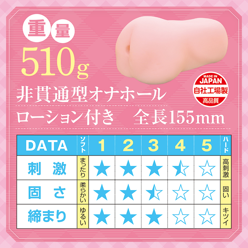 【国内自社工場製】上は柔らか下は固めの「ソフト&ハードの片面二層」採用。 【前半】挿入した瞬間から下部のゾリゾリと肉厚効果で狭さとキツさを体感する 【中盤】ゾリゾリの裏側をメインに上部の有機的なヒダと左右の山岳ヒダの3点責め! 【後半】キツく狭い最奥部! 非貫通型オナホール ローション付き 全長155mm 重量510g 日本製 新素材「ハイマテリアルスキン」使用 高弾力・高伸縮素材 まったり★★★?☆高刺激 柔らかい★★★☆☆硬い ゆ る い★★★☆☆きつい イラスト:中原よぢィ
