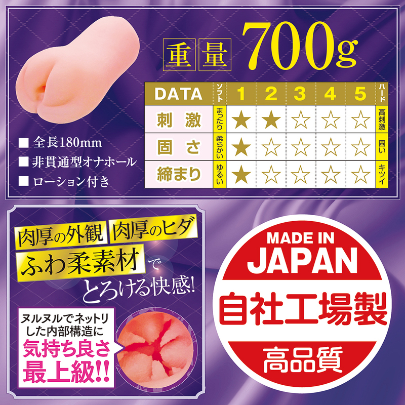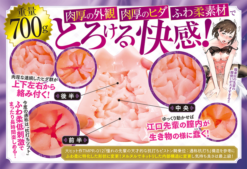 【国内自社工場製】「憧れの先輩の天才的な杭打ちピストン騎乗位」構造をふわトロに特化した形状に変更! 肉厚な外観に肉厚なヒダ、ふわトロのトロける感覚! フレキシブルソフトスキン 高軟力・高伸縮素材 匂い控えめ 非貫通型オナホール ローション付き 全長180mm 重量700g