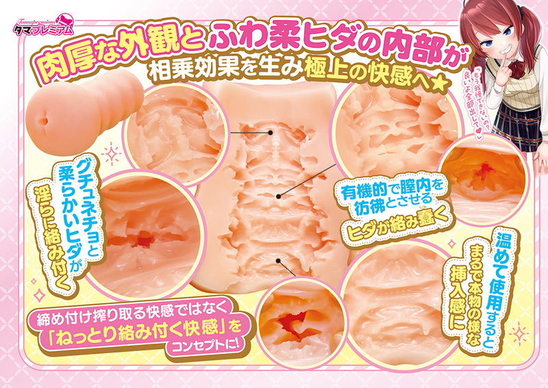 タマプレミアム 国産自社工場製 幼馴染のふわ柔極上名器 有機的で膣内を彷彿とさせるヒダが絡み蠢く グチュネチョと柔らかいヒダが淫らに絡み付く 上下が無いので回転して使用するのもオススメ 日本製 非貫通型オナホール ローション付き 全長170mm 内部長130mm 重量520g イラスト:ねりうめ フレキシブルスキン 高弾性・高伸縮素材 匂い控えめ
