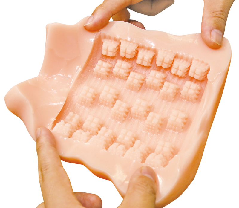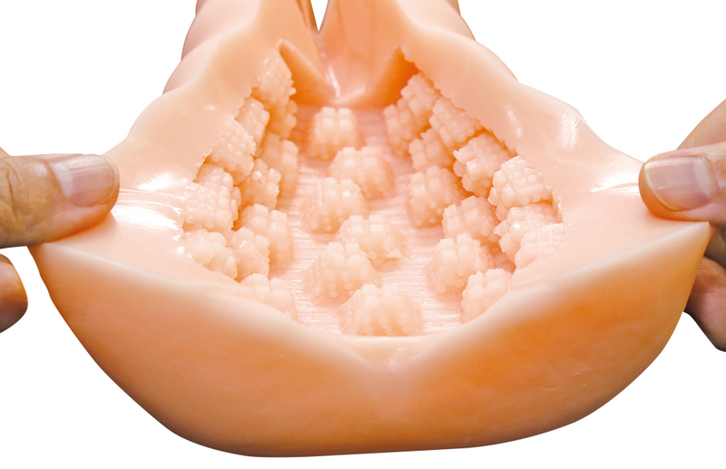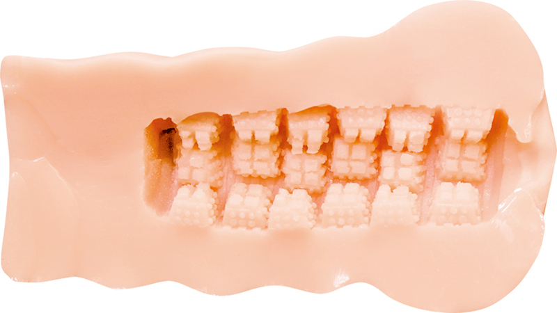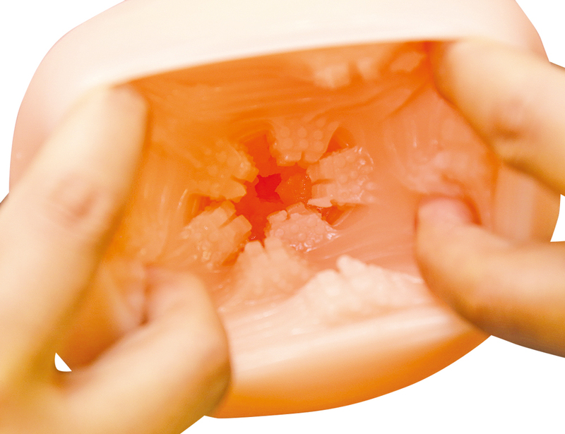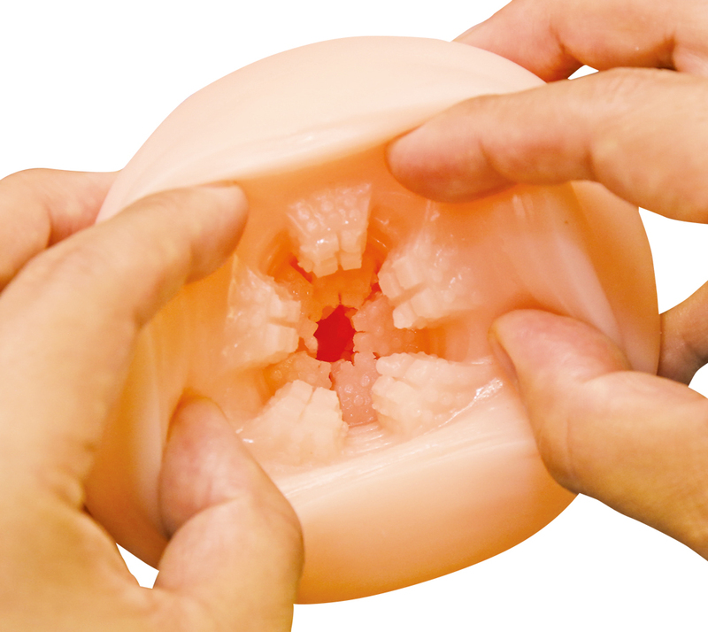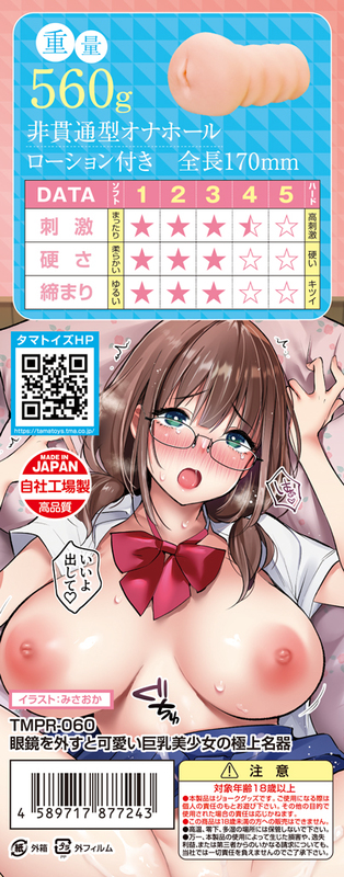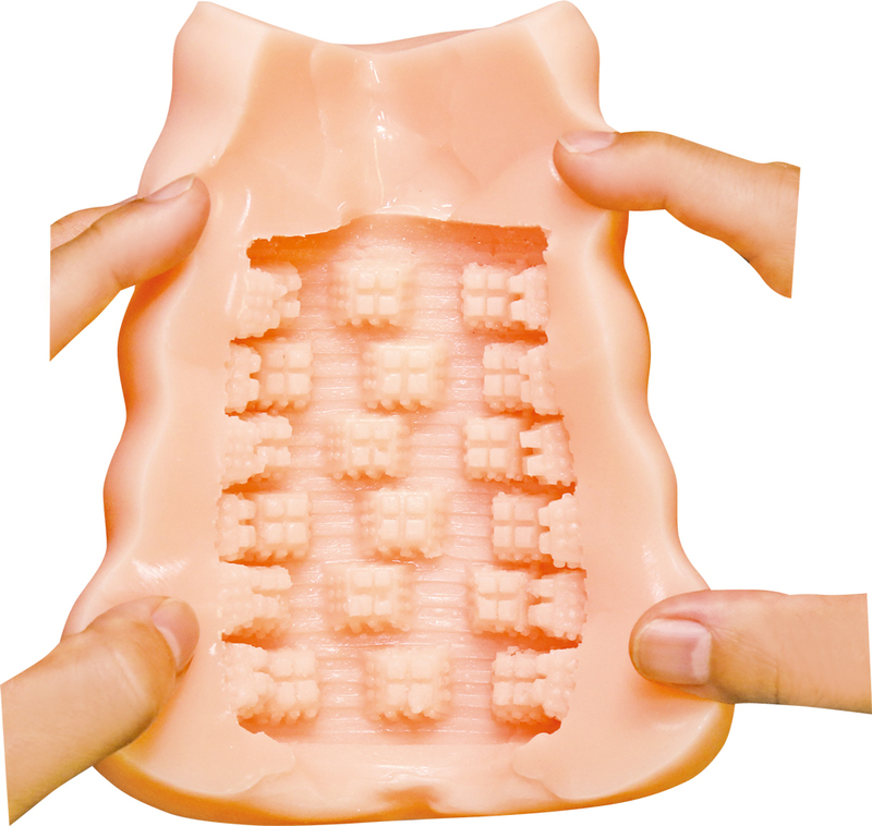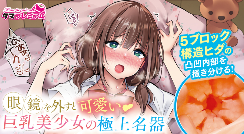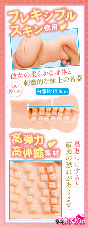 タマプレミアム 国内自社工場製 日本製 非貫通型 ローション付き 全長170mm 重量560g 内部長120mm 5ブロック構造ヒダの凸凹内部を掻き分ける 特徴的な上下左右の5ブロック構造ヒダ フレキシブルスキン 高弾力・高伸縮素材 匂い控えめ イラスト:みさおか