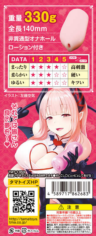 ヴァーチャルYouTuberイヴ・ヴァルレーヌ公認オナホ 淫魔の角や翼、ハート型のモチーフを内部に造形! 外側は柔らか!中は硬めの2重構造 ASMR動画同封!(17分) ▲DVDでイヴちゃんを視よう! イヴちゃんの可愛い顔とちょっとエッチな仕草、そしてバイノーラル収録されたJOI音声で…イってきます! ※ASMRとは:自律感覚絶頂反応。特殊な機材を使い耳元で囁くことにより、聴覚から心地よく脳がゾワゾワする感覚。☆DVDを視るときは、ヘッドホンをつけてみてね? ■安心の日本製 ■全長140mm ■非貫通型オ