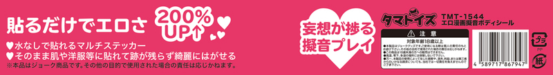水なしで貼れるマルチステッカー そのまま肌や洋服等に貼れます 貼るだけでエロさ200%UP↑ 妄想が捗る擬音プレイ 跡が残らず綺麗にはがせる 本品はジョーク商品です。その他の目的で使用された場合の責任は応じかねます。