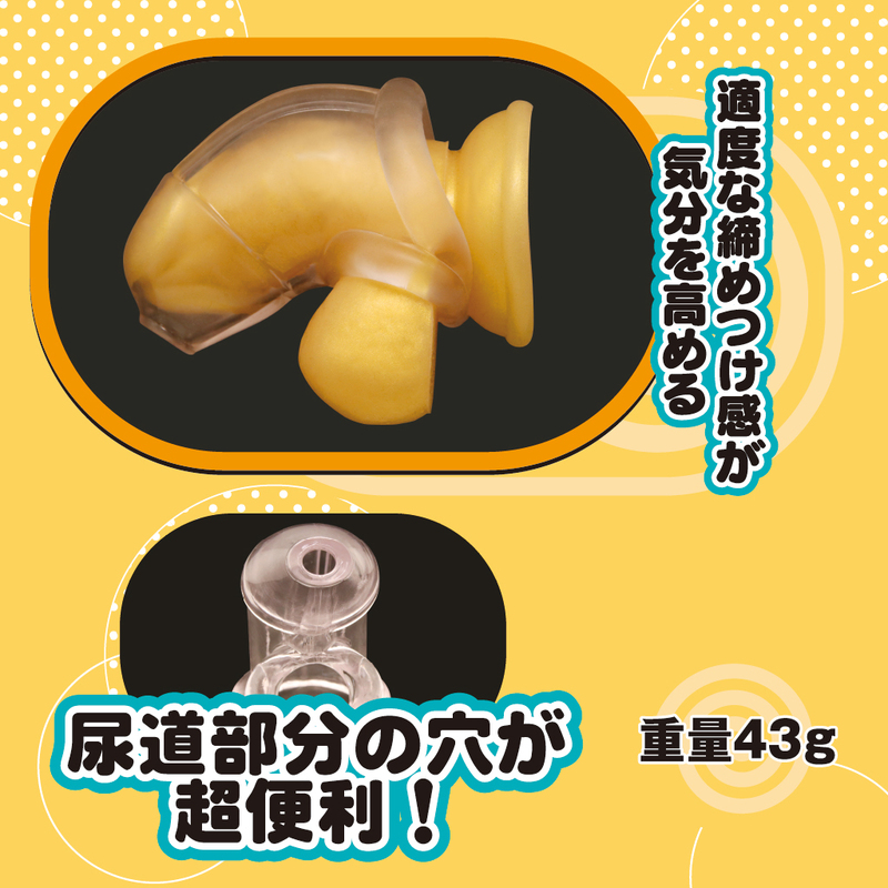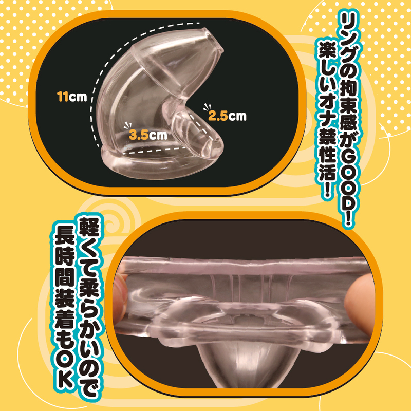 楽しいオナ禁性活! 柔らか素材で気軽に射精管理 伸縮性抜群 軽くて柔らかいので長時間装着もOK リングの拘束感がGOOD! 尿道部分の穴が超便利 おとこの娘も完全服従 おとこの娘の欲望を封印する貞操帯 適度な締めつけ感が気分を高める 自縛で妄想膨らむフェチプレイ 重量:43g