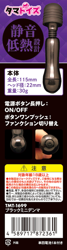小さくてパワフルな電動マッサージャー 単4電池1本ですぐ使える ネック部分も360°自在に可動 角度を変えれるから敏感スポットを逃がさない! アタッチメント1個セット ソフトな肌触りのシリコンヘッド 20種の振動パターン搭載 無段階スライドスイッチ ピンポイントに効くアタッチメント付属 静音低熱設計 単四電池1本付き ボタン長押し:電源ON/OFF ボタンワンプッシュ:ファンクション切り替え 本体 全長115mm ヘッド径22mm 重量:30g