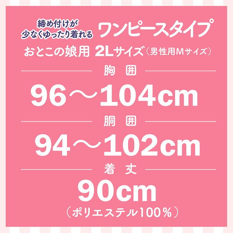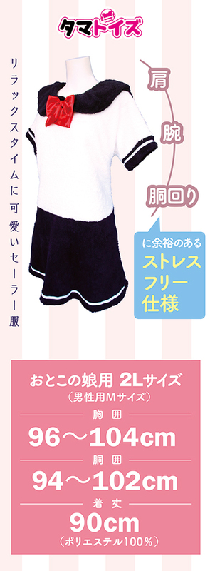 サイズ:H265mm×W240mm×D100mm 質量370g・容量:460g 商品サイズ:おとこの娘用2Lサイズ(男性用Mサイズ) 胸囲:96~104cm 胴囲:94~102cm 着丈 90cm