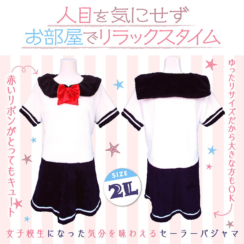 おとこの娘用2Lサイズ 女子校生になった気分を味わえるセーラパジャマ マシュマロタッチのやわらかな肌触り リラックスタイムにかわいいセーラー服 人目を気にせずお部屋でリラックスタイム 締め付けが少なくゆったり着れるワンピースタイプ 毛布のようにふんわり柔らかい ゆったりサイズだから大きな方もOK 赤いリボンがとってもキュート おとこの娘用2Lサイズ(男性用Mサイズ) 胸囲:96~104cm 胴囲:94~102cm 着丈 90cm 品質:ポリエステル100%