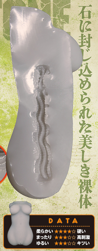 囚われの石化された女騎士 石化された女騎士のカラダを再現 辱めを受けた彼女の恥辱は永遠に続く 石に封じ込められた美しき裸体 カラダに刻まれた石化のひび割れ ゾリゾリと敏感部分を刺激する 固めの素材が全体を締め付ける イラスト:がなり龍 ローション付き 525g
