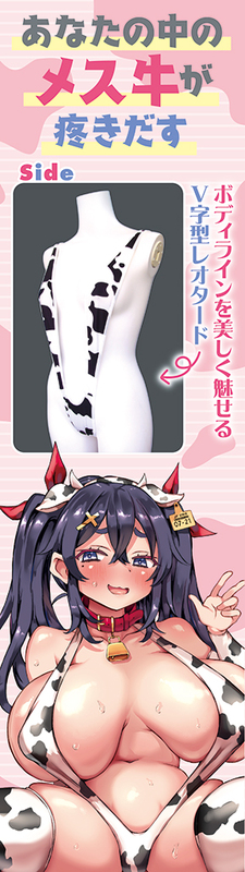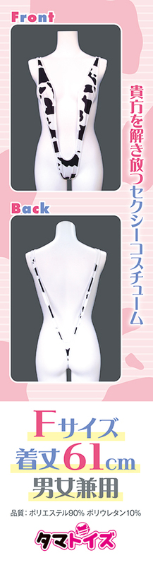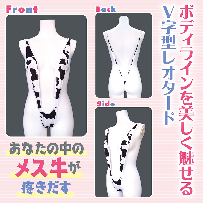 大胆でセクシーな牛柄コスチュームで、野生の魅力を解き放て! あなたの中のメス牛が疼きだす 貴方を解き放つセクシーコスチューム ボディラインを美しく魅せるV字型レオタード 着丈:61cm Fサイズ 男女兼用 ポリエステル90% ポリウレタン10% イラスト:atahuta