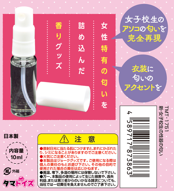新製法エタノールフリー 女子校生のアソコの匂いを完全再現 リアルな匂いに大興奮!! 発情した女子校生の濃厚な匂い 女性フェロモンたっぷりの淫臭 匂いで感じる新感覚 あのとき感じたあの匂いをもう一度 女性の特有の匂いを詰め込んだ香りグッツ 衣装に匂いのアクセントを 内容量10ml 香りの専門家が真剣に製作した本物の匂い 日本製 MADE IN JAPAN
