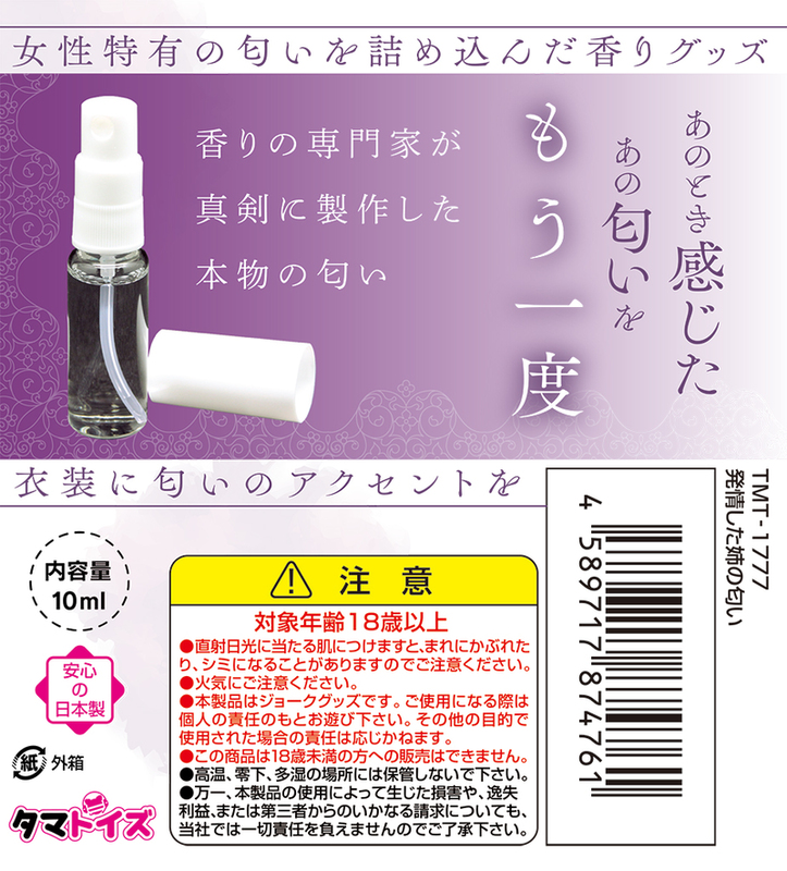 発情した姉のメスの匂いを完全再現 リアルな匂いに大興奮!! スイッチの入った姉が発するエロい匂い 発情した女性のフェロモンたっぷりの本能的香り 匂いで感じる新感覚 あのとき感じたあの匂いをもう一度 女性の特有の匂いを詰め込んだ香りグッツ 衣装に匂いのアクセントを 内容量10ml 香りの専門家が真剣に製作した本物の匂い