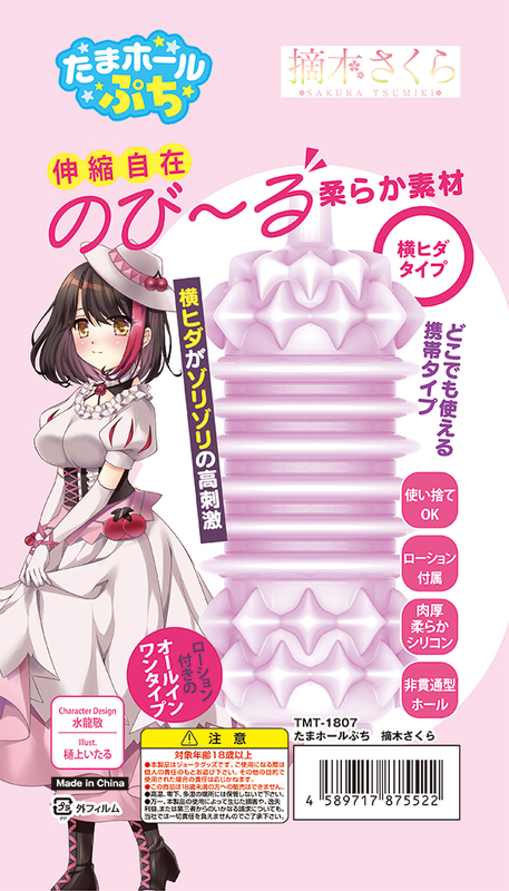 たまぷろじぇくと×樋上いたる 公式コラボ商品 セット内容:非貫通ホール+ローション 伸縮自在柔らか素材 横ヒダタイプ 76g 置き場所に困らないミニタイプ 使い捨てOK ローション付属 肉厚柔らかシリコン 非貫通型ホール ローション付きのオールインワンタイプ キャラクターデザイン:水龍敬 イラスト:樋上いたる