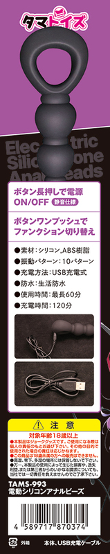 充電式ハイパワーモデル 極上のドライオルガ体験!! 滑らかでお肌に優しい高級シリコン使用 徐々に大きくなる5連シリコンビーズ グニグニ曲がる柔らかシリコン製 パワフル振動でこみ上げる絶頂感 ダブルローターでの振動がダイレクトに伝わる ローションとの併用、水洗いが可能 防水仕様でお風呂でもOK ボタン長押しで電源ON/OFF ボタンワンプッシュでファンクション切り替え 静音仕様 ●素材: シリコン,ABS樹脂 ●振動パターン:10パターン ●充電方法: USB充電式 ●防水: 生活防水 ●使用時間:最長60