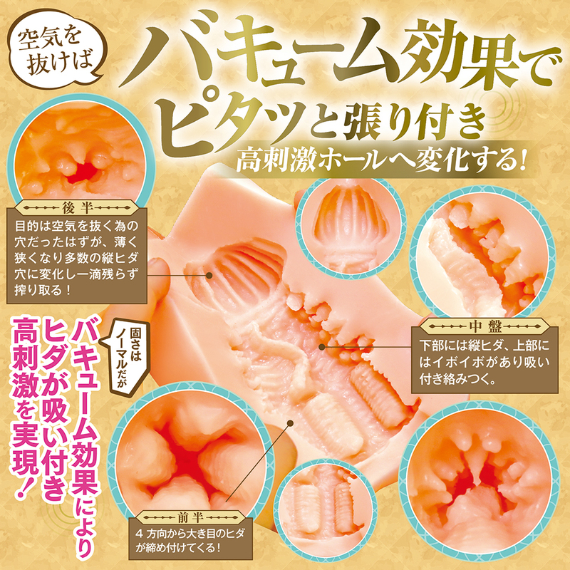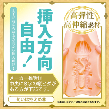 【タマプレミアム】 日本製 国内自社工場製 エルフの名器はバキューム特化! 4方向から大き目のヒダが締め付けてくる! 下部には縦ヒダ、上部にはイボイボがあり吸い付き絡みつく。 空気を抜けばバキューム効果でピタッと張り付き感触が変化する! 挿入方向自由! 左右上下あらゆる方向から使用可能! ※メーカー推奨は中央にS字の縦ヒダがある方が下部です。 フレキシブルスキン 高弾性・高伸縮素材 匂い控えめ 非貫通型オナホール ローション付き 全長150mm 重量450g