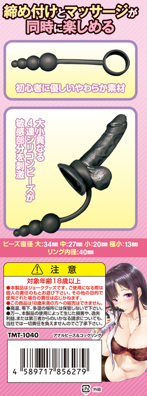 初心者にも優しい柔らか高級シリコン素材使用!締め付けとマッサージが同時に楽しめるアナルビーズ&コックリング!!