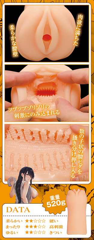 公式コラボ商品 人妻となったかつての教え子に、溜まっていた欲望をぶちまける カラダの疼きを抑えきれず堕ちていく 寝取られ人妻の熟れたマ〇コを再現 むっちりした人妻との汗だくエッチ 数の子状の膣ヒダを?き分け押し入る ツブツブゾリゾリの刺激にのみ込まれる 肉欲に満ちた柔らかな膣壁 柔かい★★☆☆☆硬い まったり★★★☆☆高刺激 ゆるい★★☆☆☆キツい 日本製 ローション付き 520g イラスト:只野めざし ?只野めざし