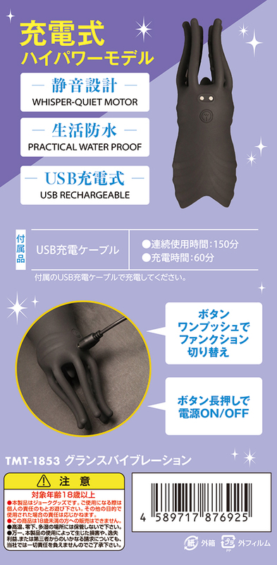 充電式ハイパワーモデル マッサージ体験!! 2WAYタイプ サワサワからチュパチュパまで10パターンの振動が楽しめる 触手型とハーフカップ型の2WAYタイプ 超強力大型モーター搭載 亀頭のゾワゾワした感覚がたまらない! 一度やったらやみつき! とまらない快感! モーターの振動がダイレクトに伝わる ボタンワンプッシュでファンクション切り替え ボタン長押しで電源ON/OFF 静音設計 生活防止 USB充電式 全長145mm 重量95g 付属品 USB充電ケーブル 充電時間150分 連続使用時間60分 付属のU