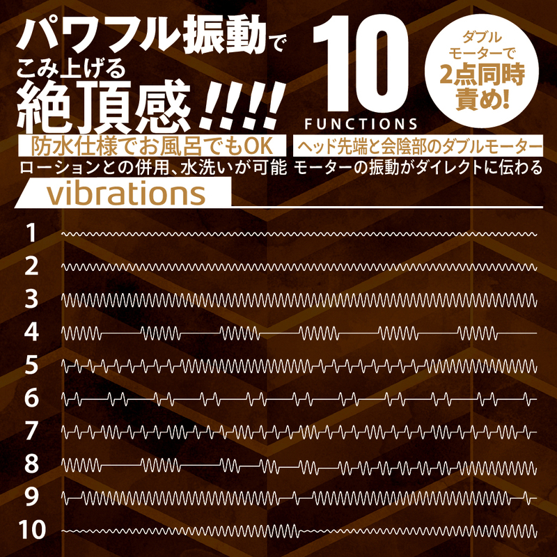 Electric Prostate Massager 充電式ハイパワーモデル 極上のドライオルガ体験!! ダブルモーターで2点同時責め! 滑らかでお肌に優しい高級シリコン使用 ヘッド先端と会陰部のダブルモーター パワフル振動でこみ上げる絶頂感 モーターの振動がダイレクトに伝わる ローションとの併用、水洗いが可能 防水仕様でお風呂でもOK ボタン長押しで電源ON/OFF ボタンワンプッシュでファンクション切り替え 静音仕様 ●素材: シリコン,ABS樹脂 ●振動パターン:10パターン ●充電方法: USB充