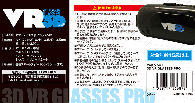 瞳孔距離(PD)焦点距離(FD)を調整可能 眼鏡を付けたまま3D-VRグラスを装着可能 対象年齢15歳以上